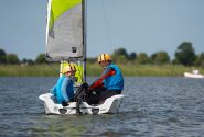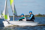 Deze tweemansboot is bovendien ideaal om samen te varen met een vriend of vriendin. Je leert samenwerken, communiceren en elkaar vertrouwen terwijl je het maximale uit de wind haalt. De boot gaat gemakkelijk schuin en kan omslaan, wat hem uitdagend maakt voor zeilers die toe zijn aan het echte werk – maar altijd met een instructeur in een volgboot dichtbij voor begeleiding en veiligheid.